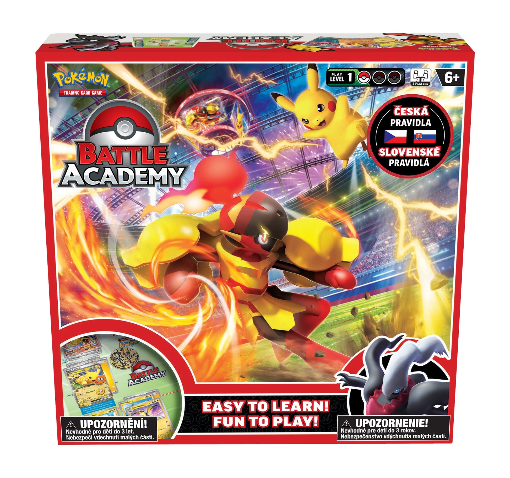 Připrav se na epickou bitvu Pokémonů! Battle Academy ti přináší vše, co potřebuješ, abys mohl začít - od českých a slovenských návodů až po tři jedinečné balíčky s extra silnými Pokémony Armarouge ex, Pikachu ex a Darkrai ex! Tato sada obsahuje 2 výukové průvodce, které tě krok za krokem provedou prvními tahy a představí ti všechna potřebná základní pravidla hry i obsáhlý návod pro pokročilý balíček a hraní.
