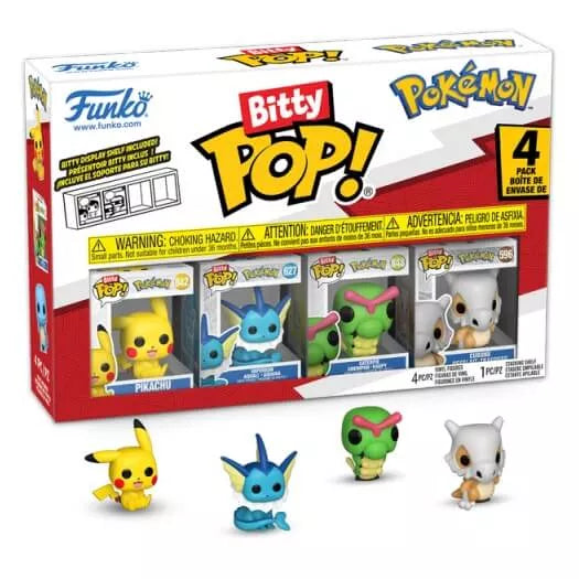 Vinylové minifigurky Pokémon Bitty POP! V balení naleznete figurky Pokémona Pikachu, Vaporeon, Caterpie a Cubone.